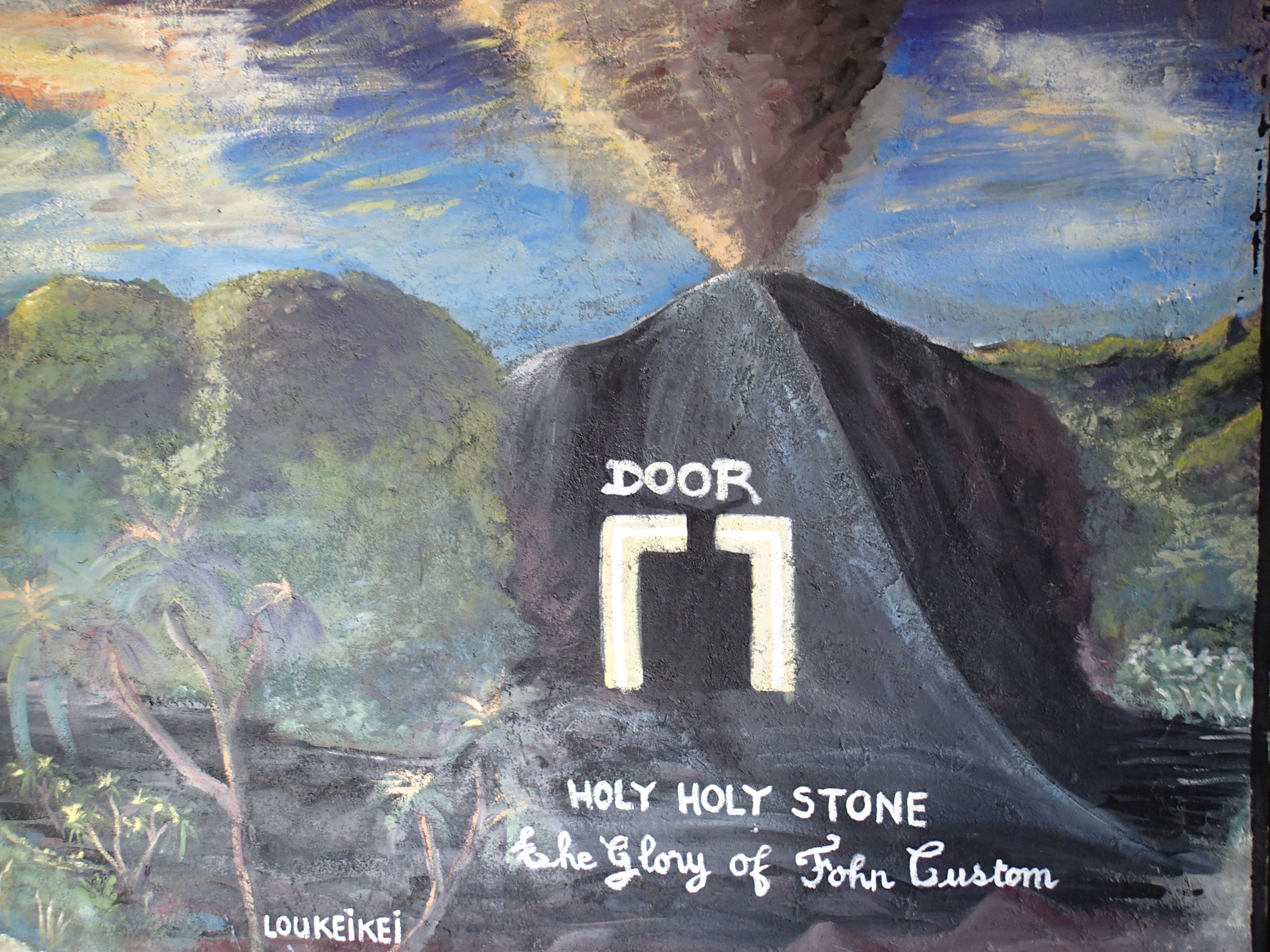 John Frum Prophesy mural depicting door on the Yasur volcano through which John Frum will return.